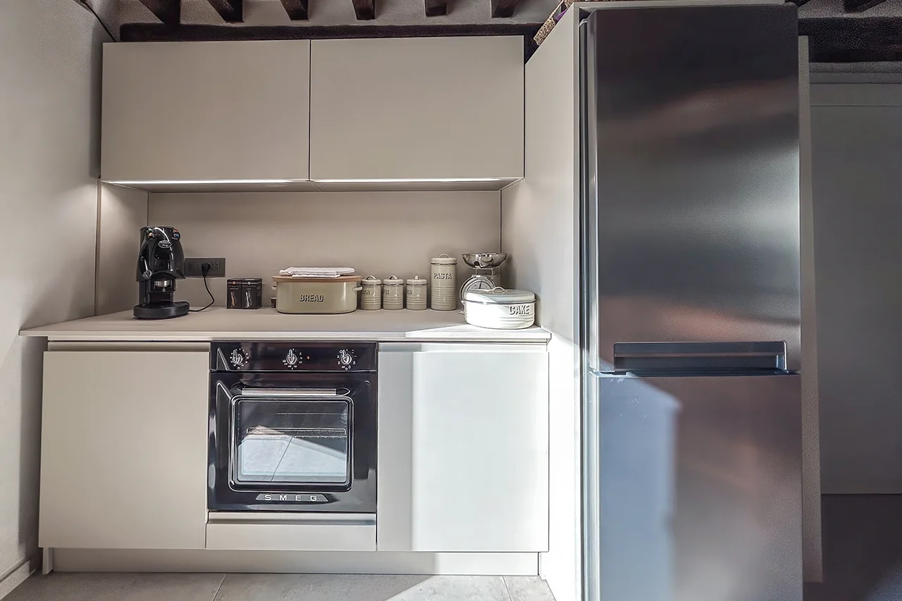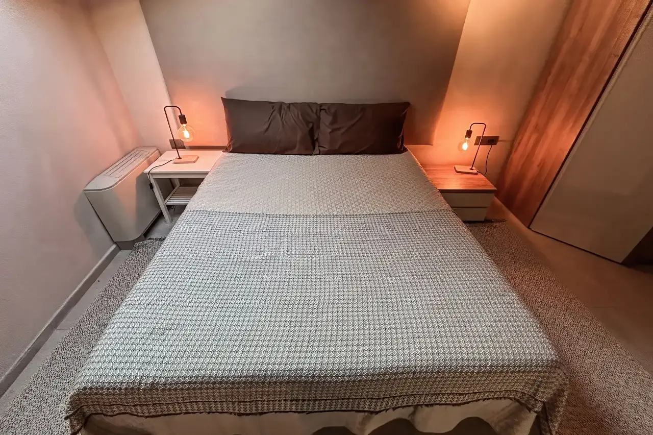 AppartamentoQuesta affascinante soluzione su due livelli vanta una superficie di 37 metri quadrati al piano terra, dove troverai una cucina dotata di una elegante penisola, ideale per la preparazione di deliziose pietanze. Il soggiorno è arredato con gusto ed è arricchito da un comodo divano letto matrimoniale, perfetto per gli ospiti. Il tavolo da soggiorno e un pratico ripostiglio completano con stile il piano terra.