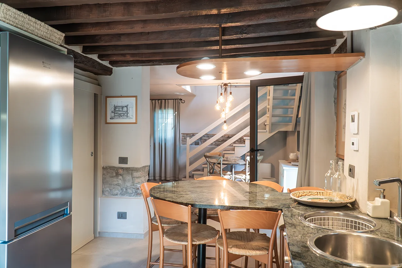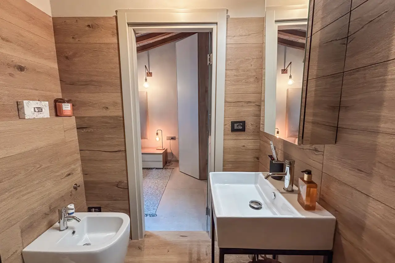 Salendo al piano superiore, ti accoglierà una camera matrimoniale su un suggestivo soppalco, che si estende su una superficie di 13 metri quadrati. Questo spazio offre un'atmosfera intima e accogliente, perfetta per momenti di relax. Il bagno adiacente, con una doccia spaziosa, occupa uno spazio di 3,5 metri quadrati, garantendo il massimo comfort durante il tuo soggiorno.